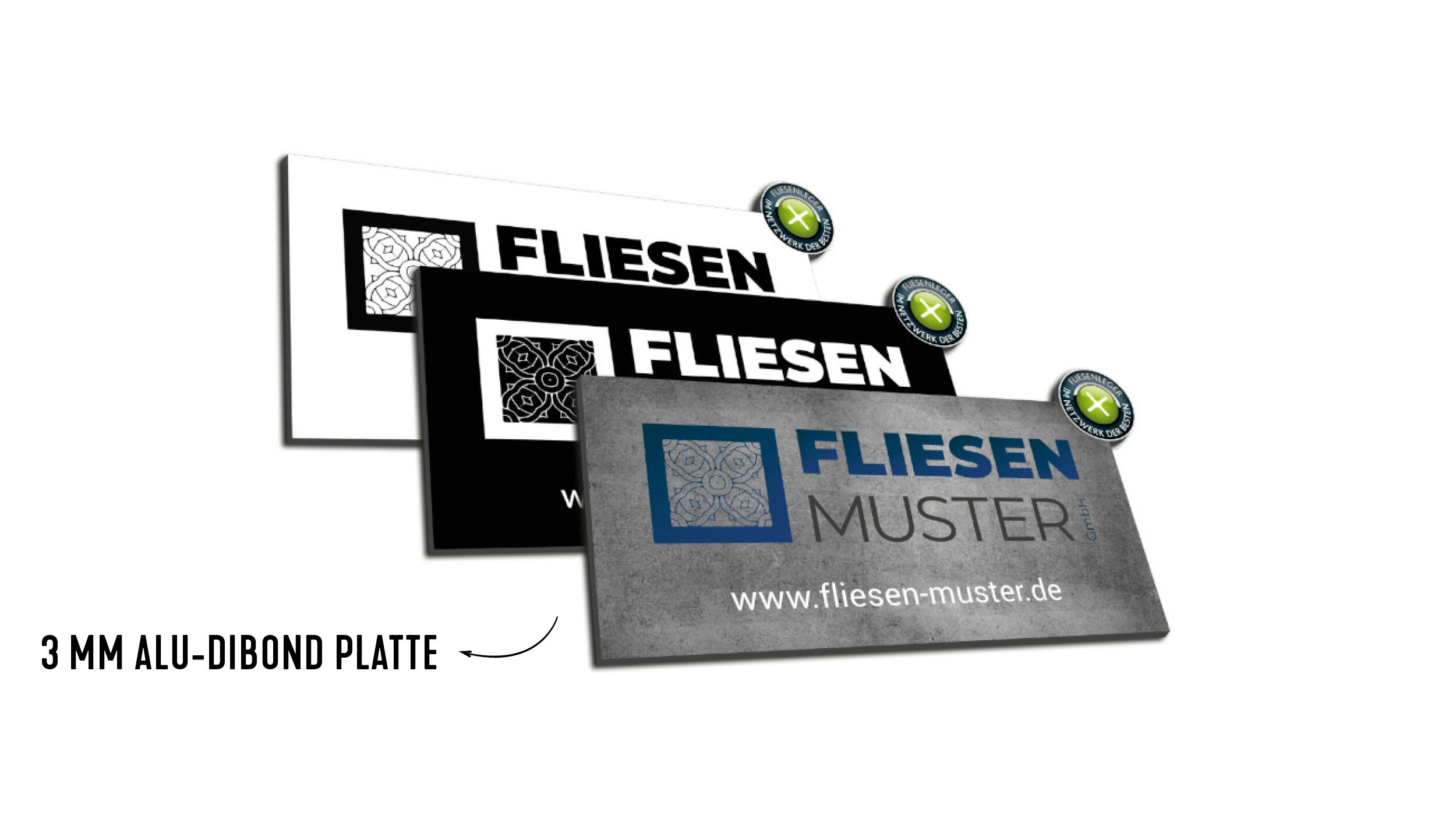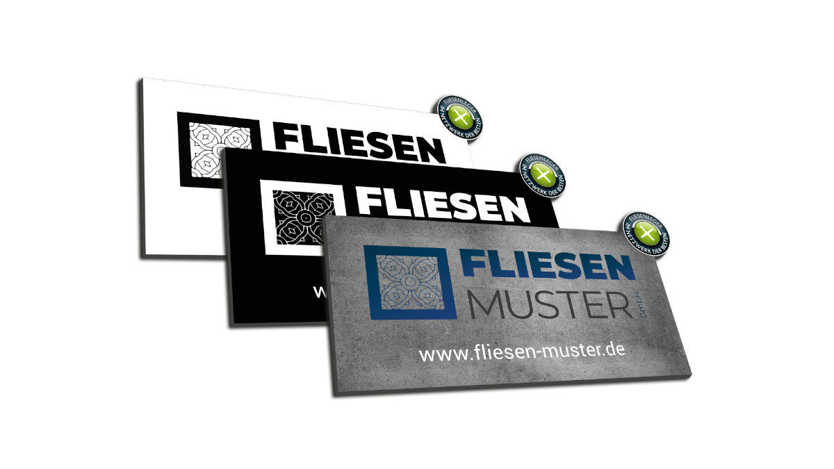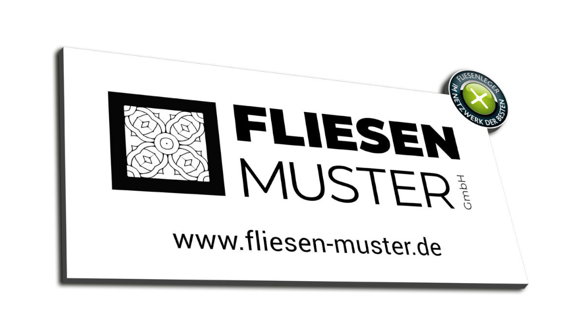 Das individuelle Firmenschild mit Netzwerk Button gibt es in zwei verschiedenen Größen für dich. Wähle zwischen dem großen (87 x 47,2 cm) und dem kleinen (80 x 43,4 cm) Schild - je nach deinem eigenen Bedarf und Platz aus und setze dein Logo mal so richtig in Szene. Der konturgefräste Netzwerk-Button zeigt auf den ersten Blick, dass du zu den besten Fliesenlegern gehörst. Abgesehen von deinem Firmenlogo hast du die Möglichkeit eine zusätzliche Textpassage auf dem Schild anzubringen. Nehme gerne Kontakt zu uns auf damit wir das Schild genaustens nach deinen Vorstellungen produzieren lassen können.