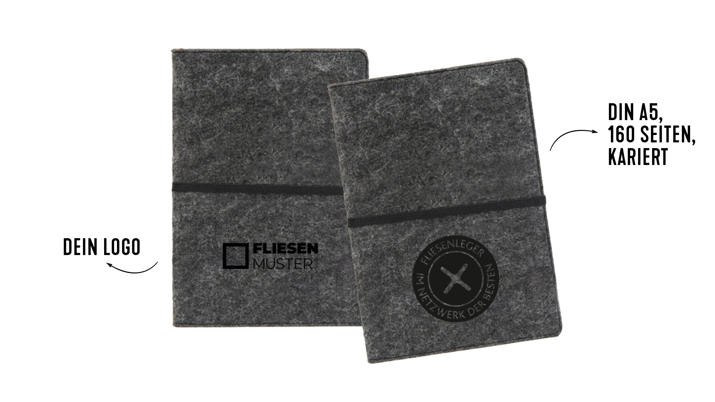 Unsere Notizbücher mit Filzumschlag fallen definitiv auf den ersten Blick auf! Gut so – denn so wandert der Blick deines Kunden automatisch auf den Logodruck, der auf dem Notizbuch angebracht ist. Das Notizbuch eignet sich für dich ganz persönlich, für deine Mitarbeiter oder auch als hochwertiges Kundengeschenk.