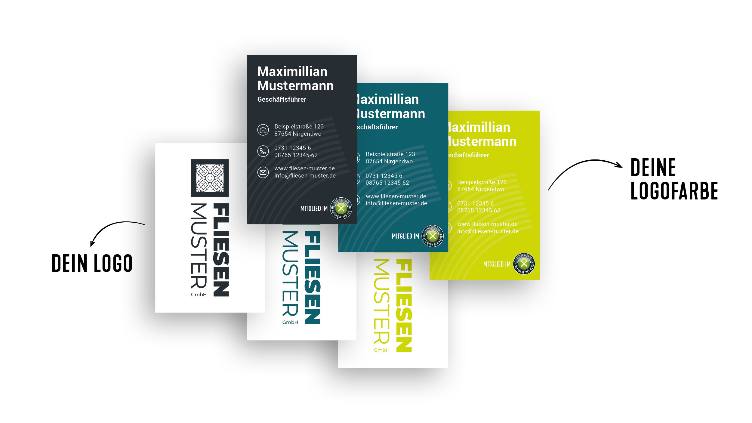 Natürlich soll das DEINE Visitenkarte sein – Daher drucken wir gerne dein eigenes Firmenlogo und deine Firmendaten auf der Visitenkarte ab. Der abgebildete Netzwerk Button steht für sich selbst und unterstützt dein Image als qualitativ hochwertigen Fliesenleger. Nehme gerne Kontakt zu uns auf: Über den Button Individualisierung anfragen.